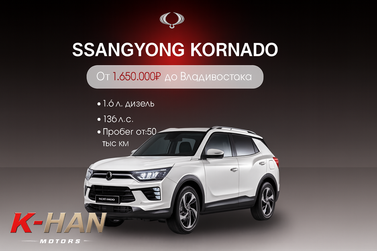 Мы пересмотрели десятки вариантов, снова пересели на дизеля и, как это иногда бывает, хороший автомобиль нашёл нас сам. SsangYong Korando 1.6 дизель на 136 лошадей — один из самых недооценённых компактных кроссоверов, который сегодня можно привезти из Кореи от 1 650 000 рублей до Владивостока. И это не шутка, это реально рабочая цифра на момент написания.
