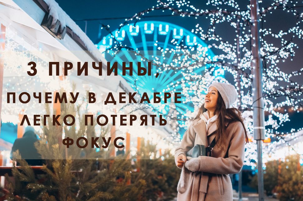 В декабре дедлайны танцуют праздничный вальс с новогодними гирляндами, а ваша концентрация пытается спрятаться под ёлку. Если вы чувствуете, что балансируете между «надо успеть всё» и «хочу завернуться в плед», — это абсолютно нормально. Сегодня разберём три причины, почему в декабре так легко потерять фокус, и как мягко вернуть себя в режим эффективности. 3 главные причины потери фокуса