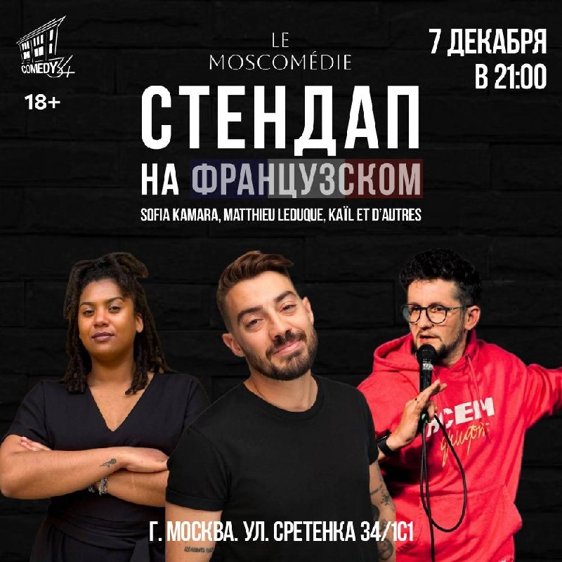 🤩🤩🤩🤩🤩🤩🤩🤩🤩🤩🤩 COMEDY ✅ 🗺ул. Сретенка 34/1с1 🤩17:00||OpenMic Место где вы можете увидеть будущих звезд комедии Билеты 🇫🇷 19:00||Стендап на французском Комики выступают на французском языке Sold out 🇫🇷 21:00||Стендап на французском Комики выступают на французском языке Sold out __________________________________________________ StandUp Brothers 🗺ул. Садовая черногрязская 22с1 🤩17:00||Stand Up | Опытные комики с ТВ Иван Бобровников Сергей Лесовой Эльдар Агаев Максат Садыков Настя Чубарова Даниил Слабоденюк Билеты 🤩19:00||Большой Stand Up концерт Максат Сыдыков Дмитрий Петров Аля Кокушкина Алексей Кучумов Полина Газаль Самвел Кафьян Билеты 🤑21:00||21 комик Молодые таланты соревнуются за денежный приз и признание Билеты 🤩Твой промокод на скидку 15%
