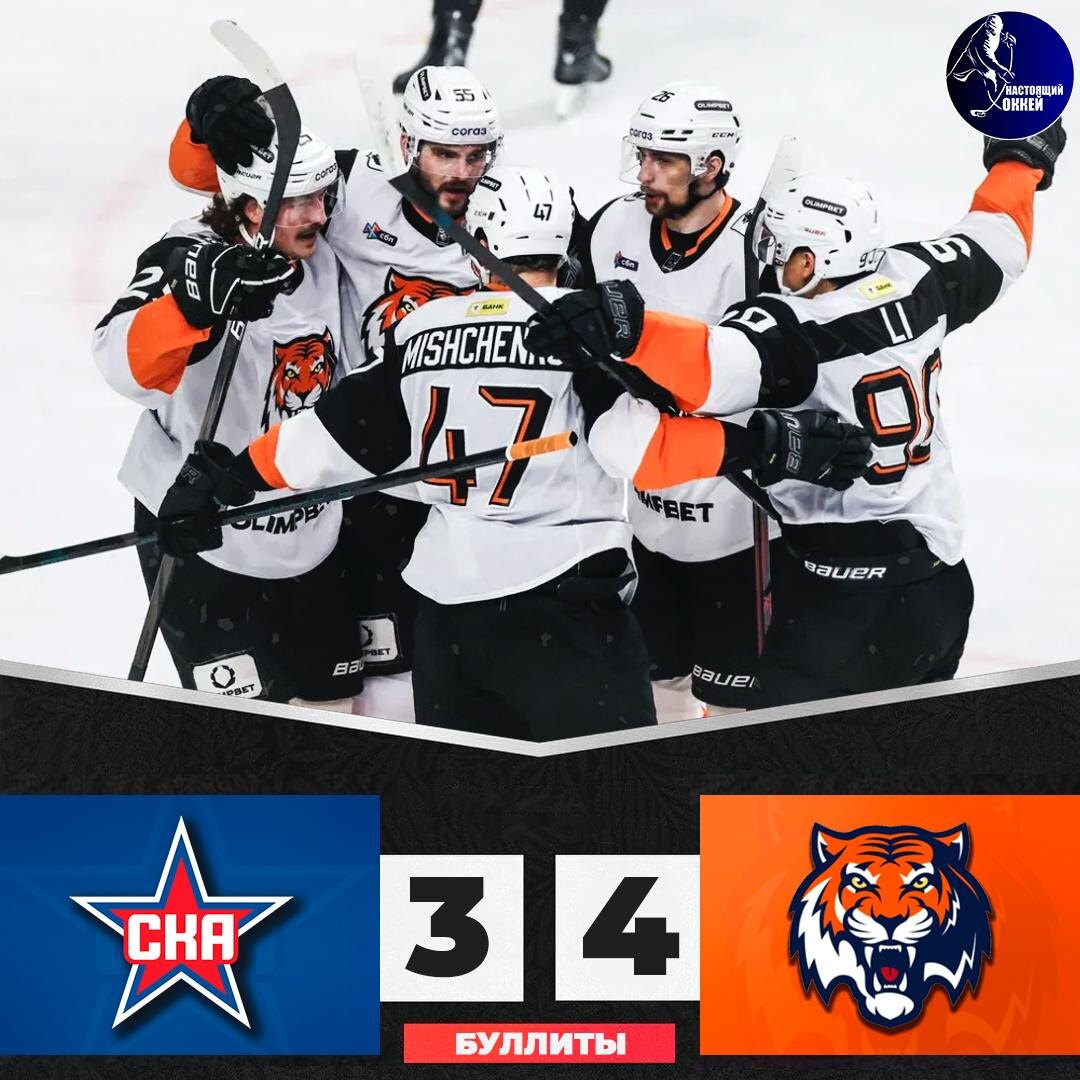 ⚡️ СКА проиграл «Амуру» в серии буллитов ⭐️ СКА – 🐯 Амур – 3:4 Б (0:0, 2:0, 1:3, 0:0, 0:1) ⭐️ 1:0 Бландизи (Поляков) – 28:27 (4x5) ⭐️ 2:0 Поляков (Голдобин, Плотников) – 30:31 (5x4) 🐯 2:1 Слепец – 48:49 (5x5) 🐯 2:2 Лихачёв (Дыбленко) – 49:23 (5x5) 🐯 2:3 Петьков (Рыков, Дыбленко) – 53:59 (5x5) ⭐️ 3:3 Хайруллин (Савиков, Плотников) – 55:04 (5x4) 🐯 3:4 Бродхёрст – 65:00 🥅 Вратари: Иванов - Дорожко (Кобозев) 📱 Подпишись на НАСТОЯЩИЙ ХОККЕЙ