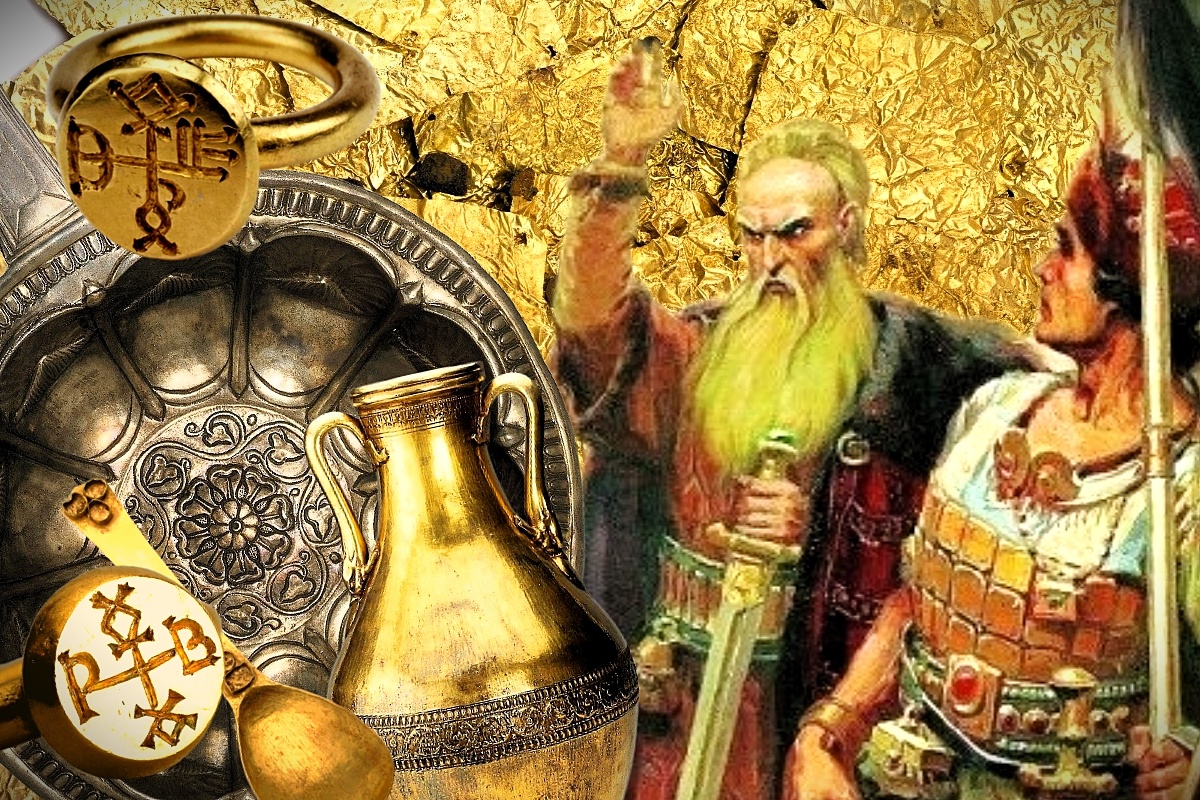 Иллюстрация: Вишнепольский Кирилл. Коллаж. "Кубрат-хан и Перещепинский клад". // Золотая могила хана Кубрата: Тутанхамон из Полтавы и пустые надежды Византии. 2025 г. (Дзен).