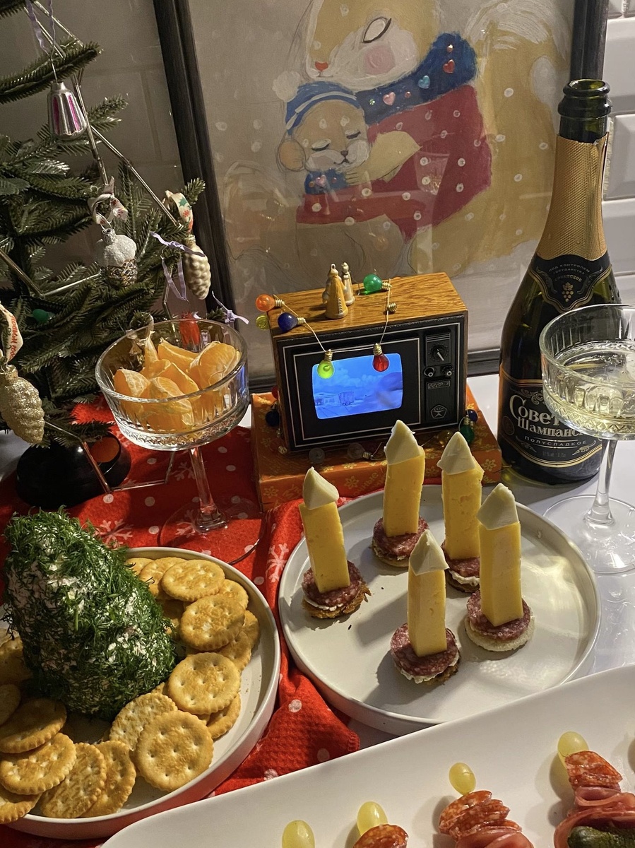 Простая и быстрая новогодняя закуска: «Свеча» Что понадобится: - Твердый сыр – 200 г - Сырные треугольники – 5 шт. - Хлеб – 2 слайса - Творожный сыр-30 г - Колбаса – 5 колец - Зубочистки Пошаговая инструкция: Нарезка ингредиентов 1. Нарежьте колбасу на тонкие кольца. 2. Нарежьте твёрдый сыр на небольшие «бревнышки». 3. Хлеб нарежьте на кружочки и слегка обжарьте на сухой сковороде или на масле до золотистого оттенка. 4. Намажьте каждый кружочек тонким слоем творожного сыра. Создание свечи 1. Выложите на кружочек хлеба слой колбасы. 2. Наденьте деревянную шпажку сквозь основание и проденьте её через колбасу. 3. Наверх шпажки насадите ранее заготовленное «сырное бревнышко». 4. Финальным аккордом поставьте наверх сырный треугольник, создавая образ горящей свечи. Декор и подача: Подавайте закуску на большом блюде, дополнив свежей зеленью или овощами. Такая простая идея позволит внести нотку новизны и красоты в ваше праздничное меню.