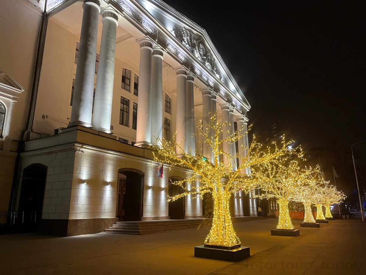 Новогодняя красота у главного корпуса МЭИ На площадке у входа в МЭИ к новогодней ёлке добавили световые деревья. Осталось только выпасть снегу и тогда праздничная новогодняя композиция обретёт завершенный вид. Адрес: Красноказарменная улица, 17 Источник: архив lefortovo_today