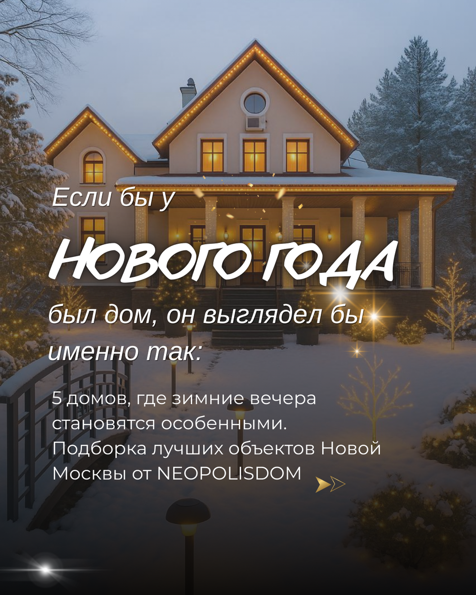 Это про состояние, которое сложно передать словами: воздух, свет, спокойствие, ощущение праздника, которое приходит раньше календаря. Мы в NEOPOLISDOM подготовили зимнюю подборку домов, каждый из которых по-своему раскрывает атмосферу загородной жизни.