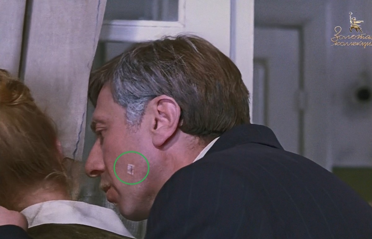 Например, в самом начале картины зрители видят Ивана Сергеевича Груздева с папиросной бумагой на щеке. Этот момент понятен любому, кто жил в те годы. Помните? Мужчины привыкли к опасным бритвам. А когда кожа поддавалась и появлялась ранка, её просто заклеивали кусочком папиросной бумаги. Штрих придумал актёр Сергей Юрский.