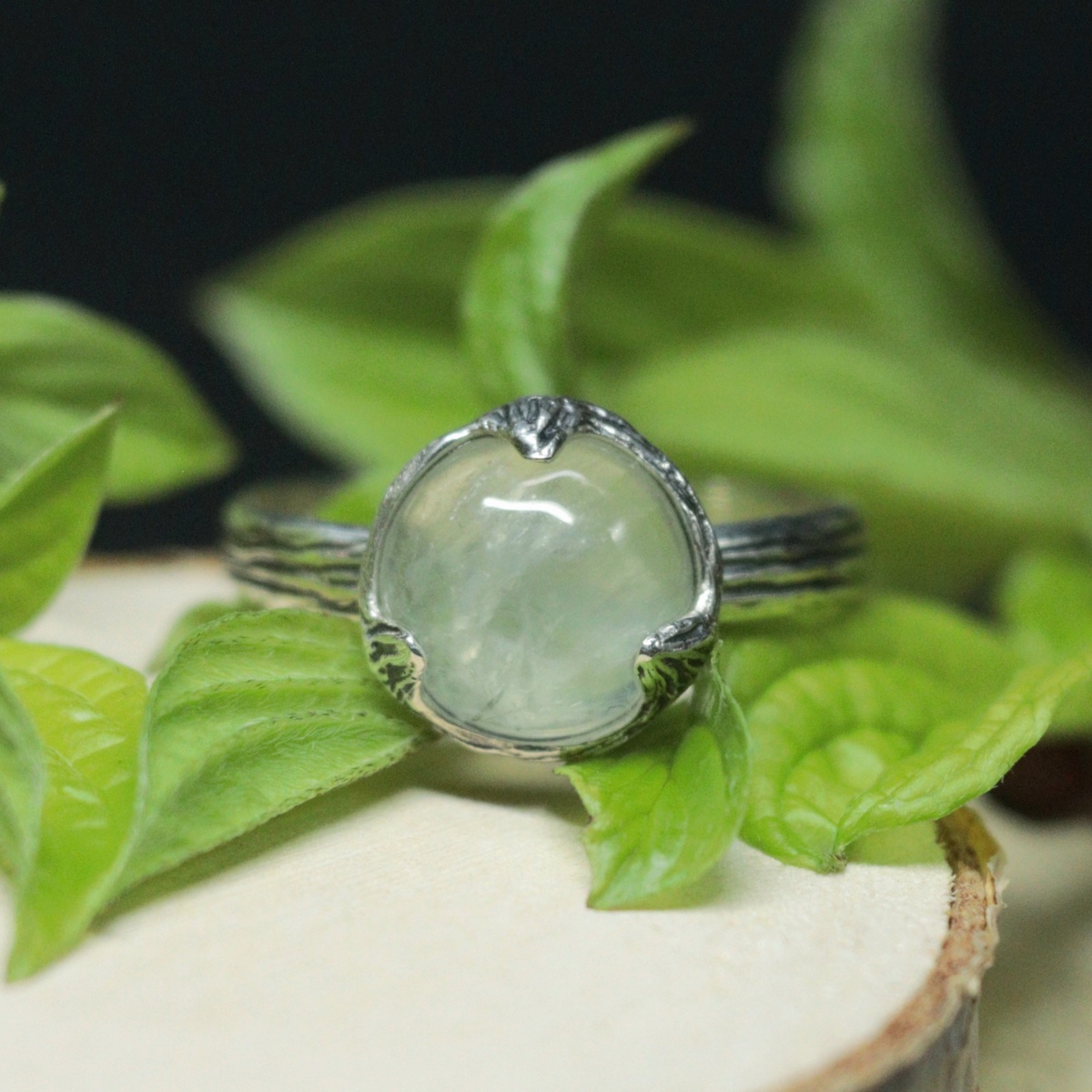 Кольцо с пренитом сделано на заказ и уже радует свою хозяйку 💚 Я нашла несколько веточек, оставшихся после обрезки городских кустарников, и поставила их в воду, чтобы потом отвезти на дачу и попробовать черенковать. Пока мы работали над кольцом, веточки проснулись и выпустили листья. Настоящее маленькое чудо и небольшой привет от весны в эти зимние дни! Хотя с пренитом, который так близок к природе, это даже не удивительно 💚 Пренит считается камнем мира и покоя, он помогает наладить тесную связь с природой и ее циклами, учит их чувствовать, понимать и жить в гармонии. Пренит улучшает память и концентрацию, подчеркивает природную красоту, учит быть уверенней в себе, придает сил и укрепляет силу воли.