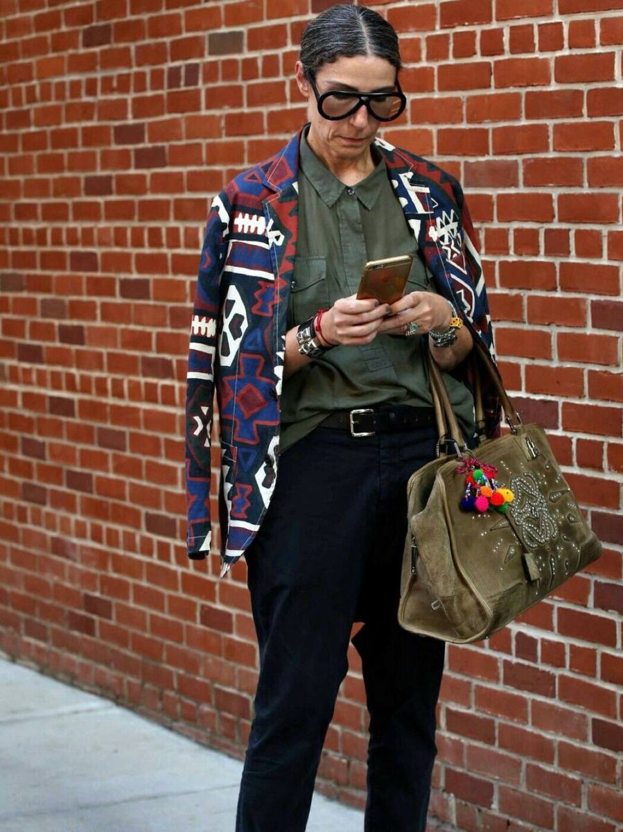- Хаки-замша + чёрный шерстяной жакет + широкие брюки.