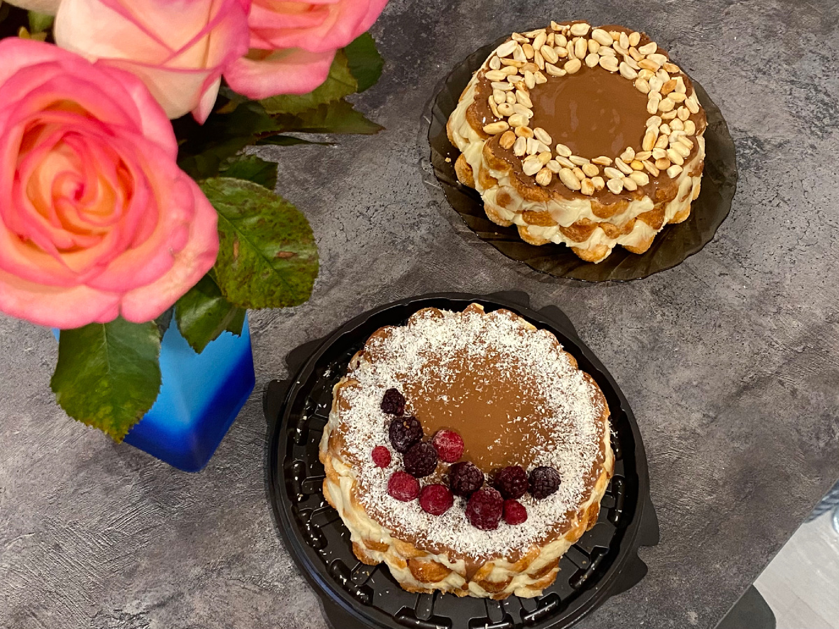 Легкий, быстрый и очень вкусный рецепт наполеона из печенья и заварного крема. Нам понадобятся: печенье «ушки»; Для заварного крема: молоко (750 мл); яйца (2-3 шт); крахмал (1 ст.л.-15 мг); мука (3 ст.л.-50 мг); сахар (150 гр) сливочное масло (150-200 гр). Для украшений: Шоколад, кокосовая стружка, орехи, ягоды или что-то на ваш вкус. Ставим закипать молоко, в это время взбиваем яйца с сахаром. В отдельной емкости смешиваем крахмал и муку и всыпаем к яйцам с сахаром. Взбиваем все до однородной массы. Убавляем огонь у молока и начинаем медленной струйкой вливать нашу смесь в молоко, при этом быстро взбиваем все венчиком. Когда появляются первые пузырьки у крема снимаем с огня и оставляем остывать. Когда крем почти остыл добавляем сливочное масло и всё хорошо перемешиваем. Пока крем остывает подготавливаем формы, у меня силиконовые, их нужно застелить пакетами так, чтобы у нас остались свободные края. Выкладываем крем в форму и слегка разравниваем по дну. Далее выкладываем печен