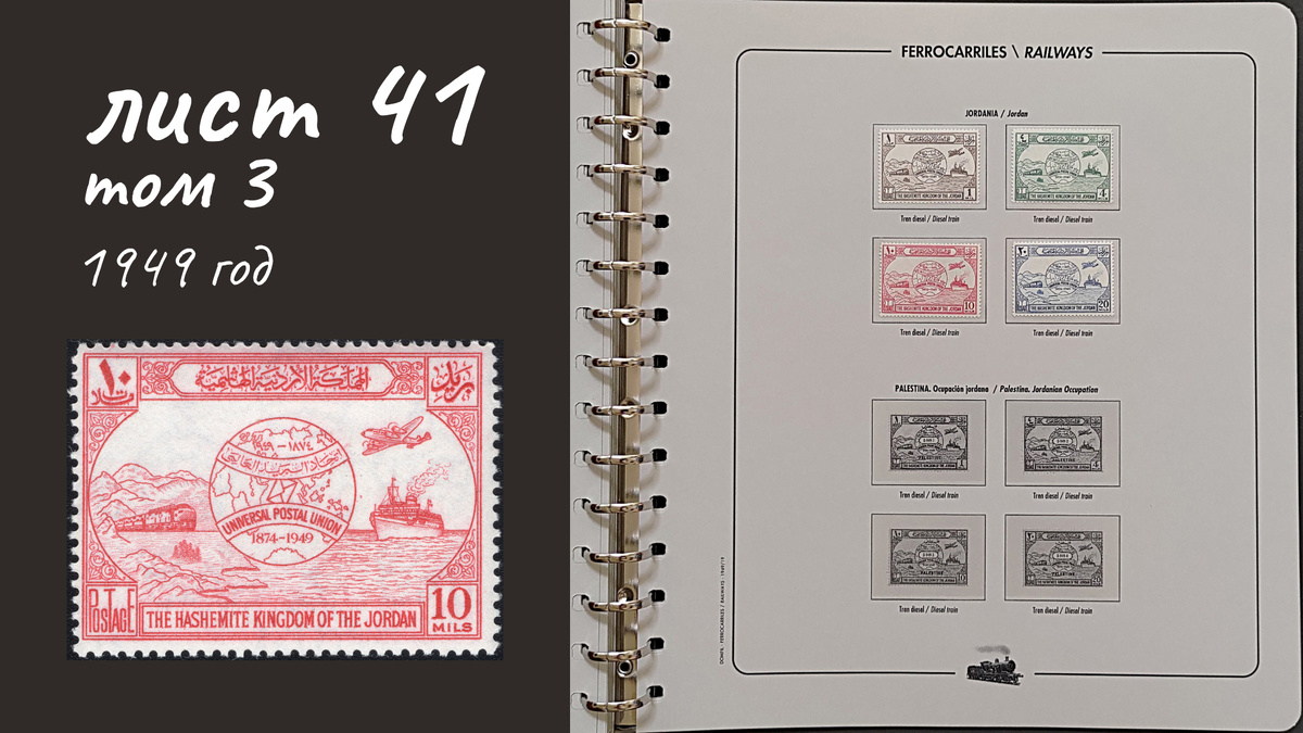 5. Палестина. Иорданская оккупация, 1949 год, № 17. Глобус и транспортные средства. 75 лет Всемирному почтовому союзу. Такой марки нет!