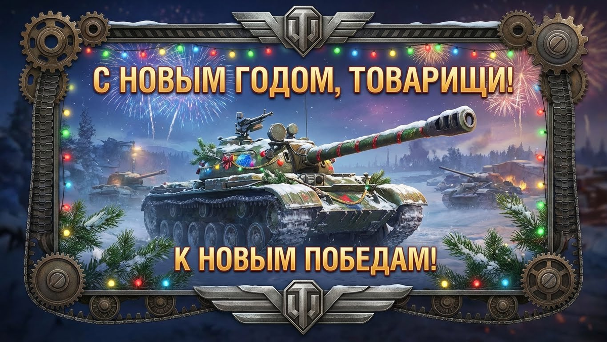 Праздничный камуфляж надет, гирлянда на стволе, а в ангаре пахнет не смазкой, а мандаринами! Даже суровым стальным машинам полагается новогодний отдых. Для вас— подборка боевых, но по-праздничному тёплых цифровых открыток. Идеально, чтобы поздравить свой взвод, клан или просто друга-танкиста. Скачивайте, отправляйте и пусть в новом году ваш процент побед будет заоблачным, а фраги сыпятся как конфетти! Удачи на поле боя и за праздничным столом! 🏆 Пусть в следующем сезоне вас ждут только топовые пробития, а арта противника будет дарить вам только "несерьёзные повреждения". С наступающим, командиры! Качайте и поздравляйте! ⛄ «Пользуйтесь на здоровье! Если захотите сказать „спасибо“ рублем (или любой другой валютой :)), вот вам удобная кнопочка. А если нет — просто поделитесь красотой с друзьями!» #WorldofTanks #WoT #Танки #НовыйГодВТанках #ПоздравленияТанкистам #ИгровыеОткрытки #ЦифроваяОткрытка #НовыйГод2025 #Взвод #Клан #Победа