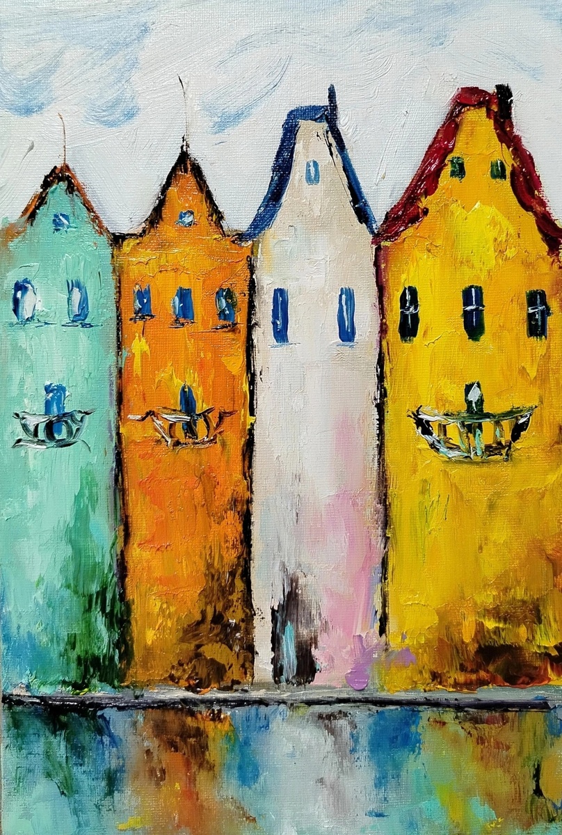 Купила я тут на аукционе картину маслом "Город ждёт гондольера" талантливого Ивана Шик. А она в Брянской области. И подумала - зачем мне доставка? Я же сама там ещё не была! Так Брянск чуть не стал моим 225-м городом, когда я спонтанно решила поехать туда за своим выигрышем. Но художник меня вразумил и сказал, что отправит посылку в Ярославль :) Теперь буду думать, как вписать в свой интерьер эту красоту, - у меня много белых стен, осталось только решить, какая из них достойна буйства красок) P.S. Домики на втором фото не Венецианские, - привезла их из Амстердама. Но по счастливому стечению обстоятельств у меня их тоже четыре, как и на новой картине. Мой мир #картина #импрессионизм #искусство #art