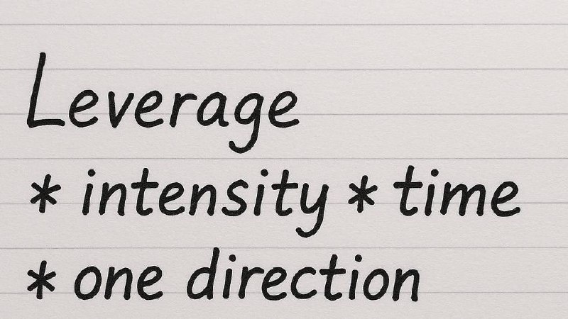 Объём работы между теми, кто преуспевает, и теми, кто остаётся на месте, может различаться в сотни раз. Пока ты делаешь 100 касаний клиентов, кто-то другой в этот же промежуток времени делает 100 000. Пока ты выкладываешь 90 единиц контента за квартал, кто-то другой с тем же качеством, теми же руками и теми же условиями делает 4000+ Потом рост идет со сложным процентом и там и появляется радикальный разрыв между двумя людьми. Разрыв в масштабе действий, умноженном на левердж. Когда ты бьёшь в одну точку годами с усилием, скоростью и умом, мир в какой-то момент трескается именно в том месте, где ты долбил. Это и есть рецепт: левердж × интенсивность × одно направление × время Все остальные просто бросают раньше.