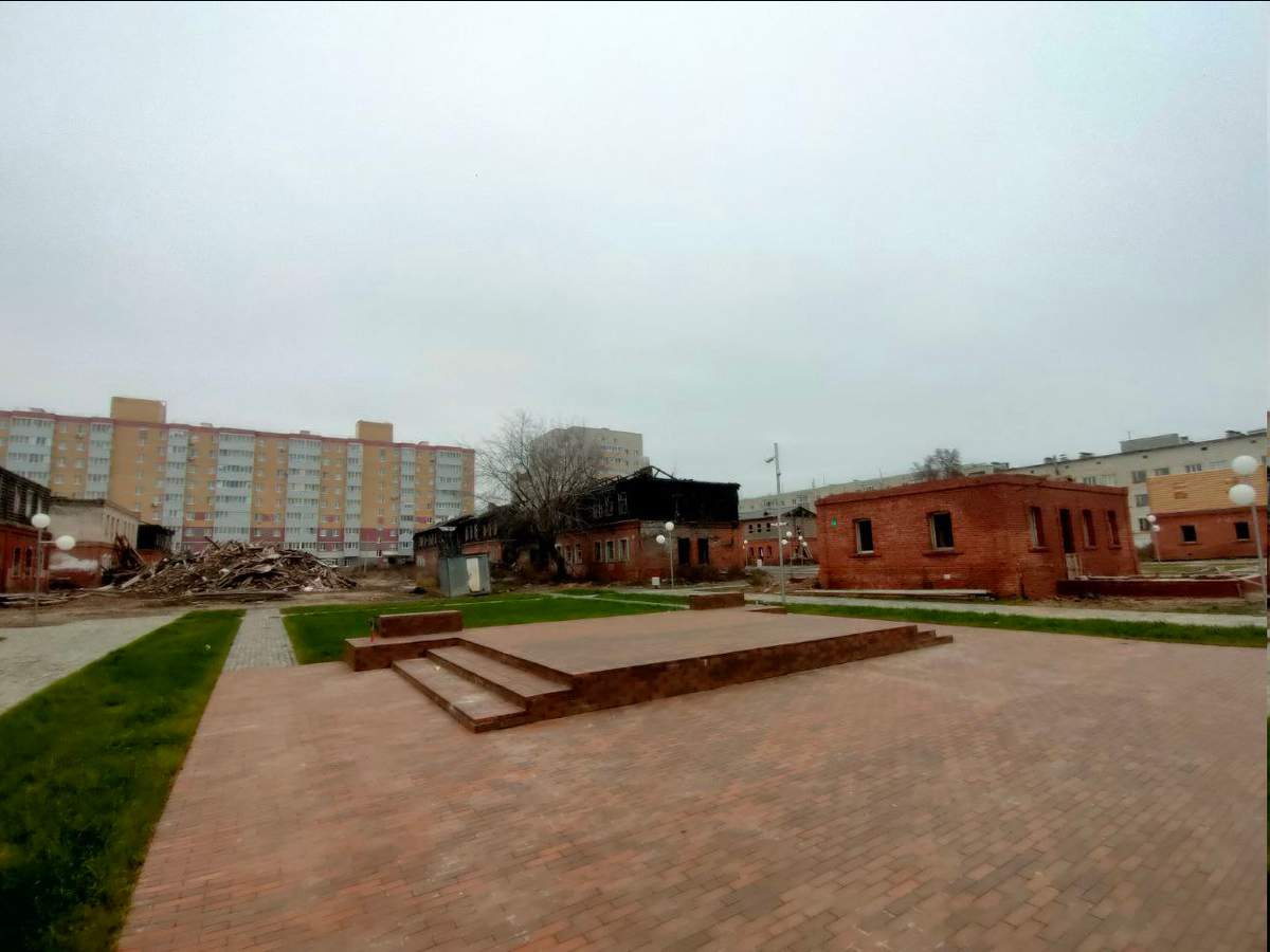 Затем мы заехали в "Полукамушки", первый исторический квартал Зеленодольска. Он сейчас в самом интересном состоянии, поспешите съездить: часть уже восстановлена, и вы увидите, чем закончится полный проект восстановления. Часть - разобрана от перегородок, обрушенных срубов и служб, и вы увидите конкретно кирпичную часть. Часть - выглядят как будто только вчера в них был пожар или вчера их расселили. Можно получить представление о бытовых условиях людей, которые жили в них до последнего, а также о конструкции именно в "надстроенном состоянии". Кроме того, пристройки-службы тогда делались из бруса и досок, а сейчас восстанавливаются покрепче, срубами, так что кое-где вы увидите неудобный и не такой долговечный оригинал.