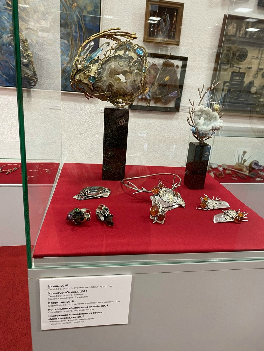 Совершено неожиданно, придя в Архангельский художественный музей, мы попали на выставку "Серебряная линия", посвященную памяти известного архангельского мастера, члена Союза художников РФ Владимира Тимофеевича Оржевского. Владимир родился в 1951 году в городе Буй Костромской области. В 1972 году окончил Красносельское училище художественной обработки металлов. В 1970-90-е годы мастер много путешествует в поисках материала и творческого вдохновения по Кольскому полуострову, побережью Белого моря, Северному Тиману, Канину Носу на вертолете, судах, пешком. В этих экспедициях он собрал большую коллекцию срезов камней, композиций из трав и ветов и вдохновения. Минерал и друзы, как часть горной породы, выглядят как обычные камни. И только при поперечном распиле показывают свою космическую красоту. Художник творит свободно, не выполняя чей-то заказ. Он ищет свою сказку и сою Женщину. "Женщина - целый мир для меня, я ее обожествляю. Это самые прекрасные создания природы. Ей посвящаю свои пе