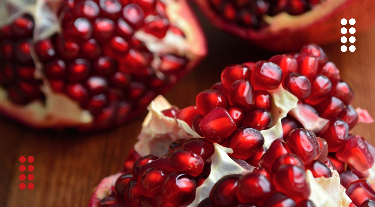 Гранат богат эллаговой кислотой и антоцианами — мощными антиоксидантами, которые уменьшают повреждение клеток ультрафиолетом. Они способствуют более быстрому восстановлению клеток кожи, а также профилактике онкологических заболеваний.