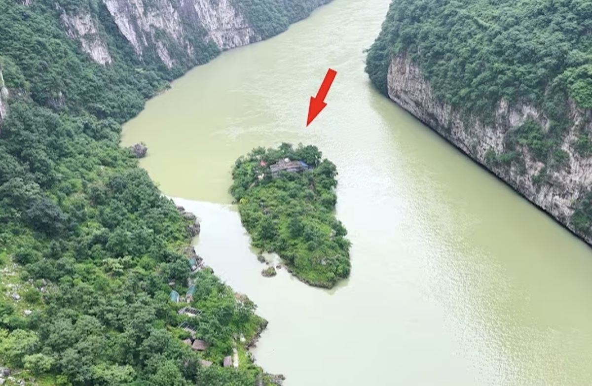 Где то в Сычуани, в глубоком каньоне реки Цзинькоу, вода выточила в скале упрямый выступ. С берега он кажется просто очередной скалой, серой и мокрой от брызг. Но если остановиться и всмотреться, скала обманывает. На ней угадывается силуэт крыши, ритм столбов, геометрия огорода. Это остров. И на нем живет семья.