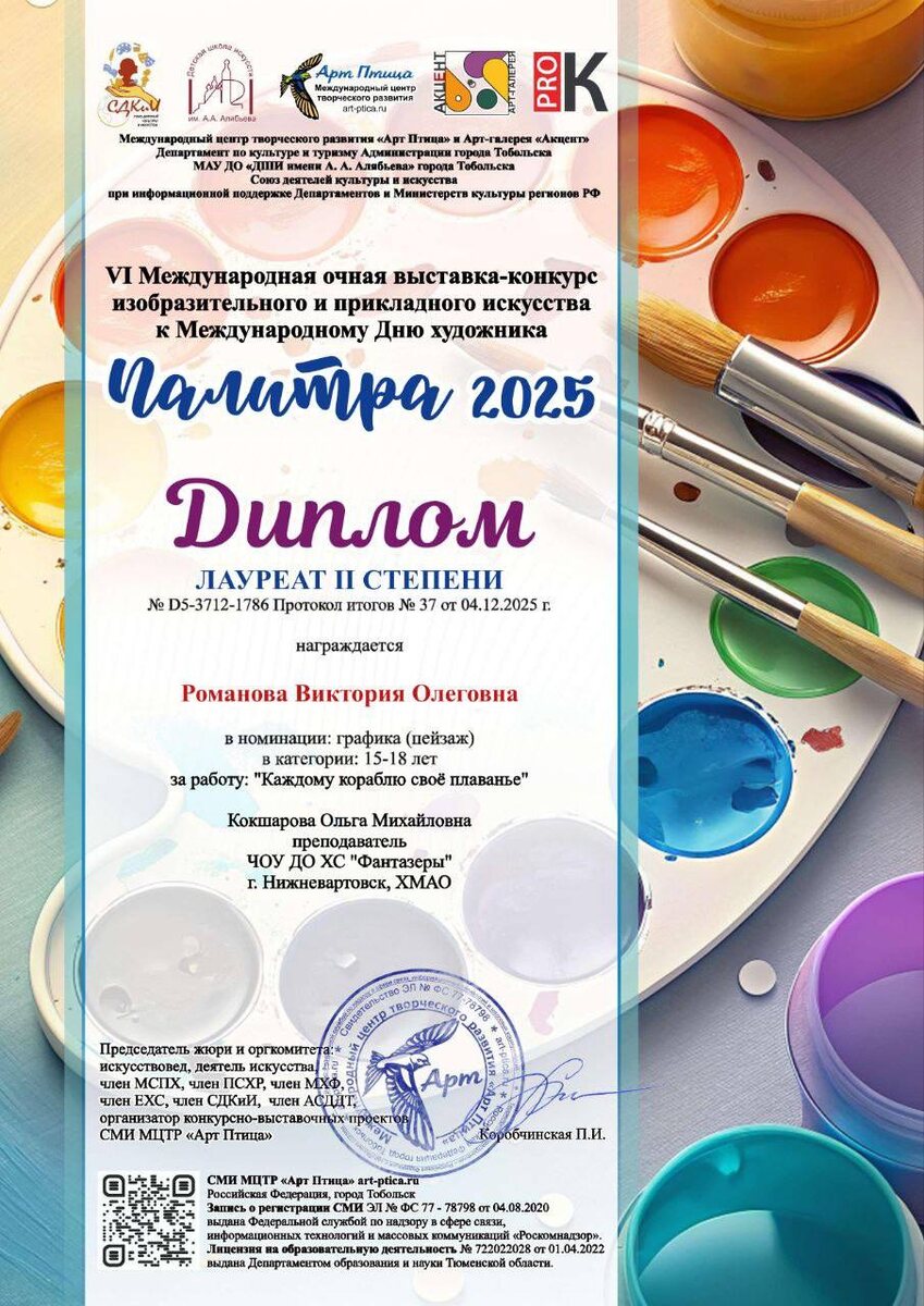 🏆 Друзья, у нас потрясающая новость! Пришли результаты VI МЕЖДУНАРОДНОЙ ВЫСТАВКИ-КОНКУРСА изобразительного и прикладного искусства «ПАЛИТРА 2025», посвящённой Международному дню художника!