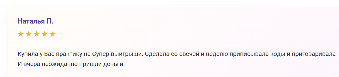 Неожиданное поступление денег после проведения " ПРАКТИКИ ДЛЯ СУПЕР ВЫИГРЫШЕЙ", отзыв уже на сайте . Все реально и все работает, и Вы тоже сможете получить. Рассказываю все подробно о практике. Первый шаг — ДЕНЕЖНЫЙ ПОТОК ВОЗВРАЩАЕТСЯ К ВАМ, это и потерянные деньги, долги, несчастливые покупки в которых остался огромный осадок от траты. Поэтому важно направить в свою сторону и войти в пространство денежного потока и двигаться в нем смело и свободно, получая то, что Вы готовы иметь, и постоянно повышая ваш уровень комфортности в денежной сфере. ВЫ корректируете направление денежного потока с помощью РИТУАЛА и: отпускаете установки , которые ведут к появлению ситуаций постоянно отдачи денег обнуляете денежные долги через получение сильного денежного потока открываете новые источники прихода денег постоянно получаете больших денег Далее — ОТКРЫВАЕТЕ ДЕНЬГАМ ПУТИ - ВС