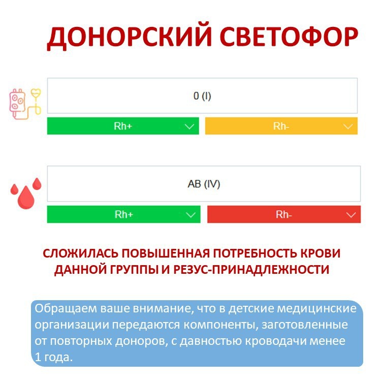Друзья! «Светофор» — это рекомендация, а не ограничение. Даже если ваша группа «зеленая», ваша кровь всё равно спасет чью-то жизнь. Не стоит отменять визит из-за этого! Каждая донация бесценна. ❗️Мы принимаем доноров с ЛЮБОЙ группой крови!