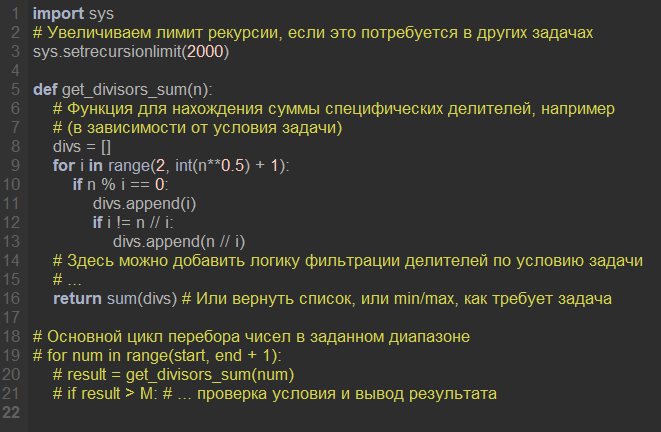Задание 25 ЕГЭ по информатике 2026: Охота за делителями и масками чисел Привет! Задание 25 — это твоя возможность продемонстрировать глубокое понимание программирования и алгоритмов обработки целых чисел. Это задание высокого уровня, которое требует от тебя написать эффективную программу для поиска чисел, удовлетворяющих определенным критериям. В 2026 году оно остается ключевым элементом для получения высоких баллов. Разберем основные типы задач и единственный верный подход к их решению — программирование. --------------------------------------------------------------------------------------------- 🔄 Что ждет нас в 2026 году? Задание 25 стабильно и посвящено обработке целочисленных данных и поиску делителей. К 2026 году основные тренды заданий: Сложные критерии делителей: Условия могут быть очень специфичными — например, найти делитель, оканчивающийся на определенную цифру, или найти сумму/количество делителей, не считая 1 и самого числа. "Маски" чисел: Все чаще встречаются задачи,