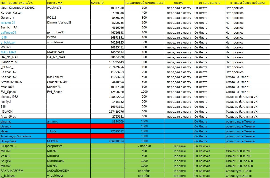 🚛Золото оформлено! За ВК данные отправлены, За Трово переведено на аккаунты. Золото за розыгрыш в ТГ - ждем еще двоих и отправляем...
