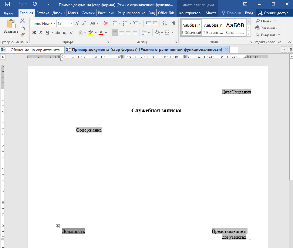Вы подготовили шаблон, добавили реквизиты для автозаполнения данными из карточки документа, но при заполнении данных в документе и сохранении, в шаблоне файла почему-то не происходит вставка значений из эти реквизитов. При открытии файла будет выглядеть аналогично как это было в самом шаблоне. Для исправления ситуации нужно кликнуть правой кнопкой мышки по файлу и нажать на команду "Заполнить файл данными документа". Вот так легко мы решили проблему, не очень удобно, но что поделать) Ладно, это всего лишь борьба с следствием, а нам нужна причина :) А она до безобразия проста, если в виде документа вы кликните по шаблону правой кнопкой мышки и выберете команду "Открыть карточку". В открывшемся окне переходим на страницу "Прочее" и в реквизите Расширение видим, что формат файла doc, а нам нужен формат docx. Переводим разрешение файла в нужный формат, далее создаем новый документ и проверяем автозаполнение файла.