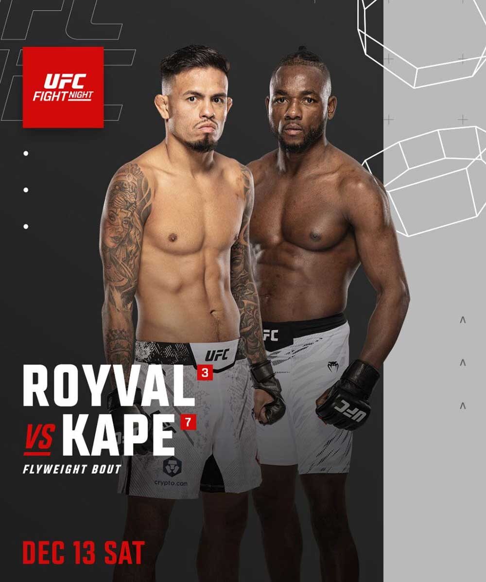 ✨ Джейсон Ройвал 🌟Возраст: 31 год Рост: 180 см Размах рук: 188 см Весовая категория: полулегкий вес Стиль борьбы: грэпплинг и муай-тай Ключевые достижения: чемпион LFA, победитель турнира The Ultimate Fighter 24 🦅 Джошуа Капе 🐇Возраст: 27 лет.Рост: 175 см.Размах рук: 183 см.Весовая категория: полулегкий вес.Стиль борьбы: бразильское джиу-джитсу и бокс.Ключевые достижения: победитель Bellator Europe, экс-проспект MMA.