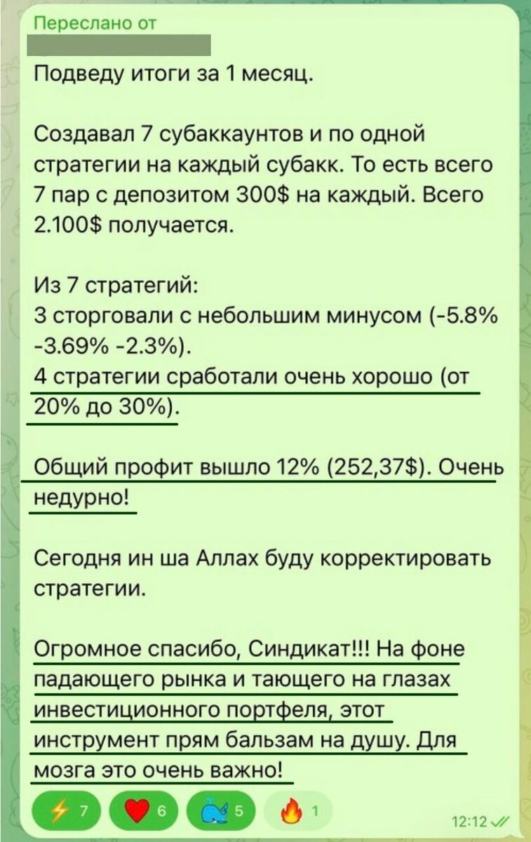 Недавно мы обновили нашу среднесрочную стратегию АлгоТрейдинга: добавили новые данные, улучшили логику. После обновления показатели сразу стали выглядеть сильнее — на скрине видно результат участника: +12% за месяц 🔥 Это отличный результат, особенно на таком рынке. Недавно к нам присоединился сильный эксперт в этом направлении — с его помощью, ин ша Аллах, стратегии станут ещё стабильнее и прибыльнее. Также сейчас мы активно работаем над этим направлением: уже скоро можно будет использовать новую краткосрочную стратегию Если хотите понять, почему это дозволено, какие перспективы у этого направления и смогут ли новички применять такие стратегии и получать прибыль — приходите на наш большой эфир 13 декабря. Такого формата у нас ещё не было. На этом эфире мы разберём темы, которые раньше не раскрывали. 🔗 Зарегистрироваться на эфир закрытое сообщество | обменник | bybit | пассивный доход 14%