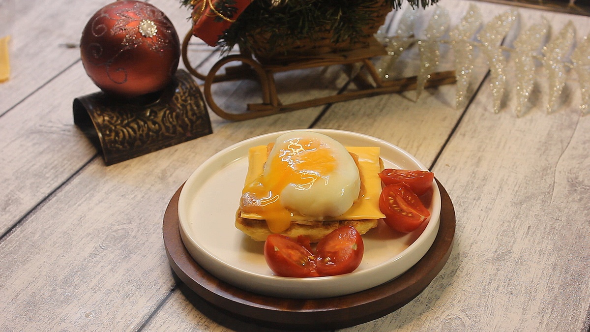 Представьте себе утро, когда вы просыпаетесь с улыбкой, предвкушая что-то особенное. Это утро начинается с нашего уникального завтрака! На тарелке лежит аппетитный драник, покрытый золотистым сыром. Рядом — свежие, сочные ломтики помидора. Но самое интересное — это яйцо пашот, которое венчает это кулинарное творение. Возьмите нож и аккуратно надрежьте яйцо. В этот момент вы увидите, как нежный желток начнет медленно вытекать, создавая волшебный контраст с золотистым сыром и хрустящим драником. Наслаждайтесь каждым кусочком этого утреннего шедевра. Пусть ваш день начнется с вкуса, который останется с вами на весь день! Отварной картофель натираю на терке. Добавляю яйцо, крахмал (1 столовую ложку), соль и перец. Все тщательно перемешиваю. Жарим драник: На сковороду вливаю масло и выкладываю картофельное тесто. Обжариваю до золотистой корочки с обеих сторон. Слабосоленую форель тонко нарезаю. Сыр гауда освобождаю от пленки. Готовим яйца пашот: Беру пашотницу и кладу в неё яй