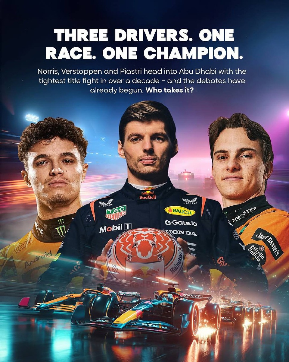 Ребята, аттеншн! Сегодня всех любителей Формулы 1 и их боевых подруг ждет залипательное шоу — финальная гонка заключительного этапа чемпионата мира Гран-При Абу Даби и всего сезона 2025. Сильнейшие F1 пилоты планеты — Макс Ферстаппен «Ред Булл», Ландо Норрис «Макларен» и Оскар Пиастри «Макларен» — идут практически вровень и любой из них может стать чемпионом мира этого года. Запасаемся напитками, чипсиками и предвкушаем рубилово на максималках. Включайте трансляцию в VK в 16:00 по Москве. Сегодня или никогда. Update: Гонщик McLaren Ландо Норрис впервые стал чемпионом «Формулы-1» @dailydvizh жжж