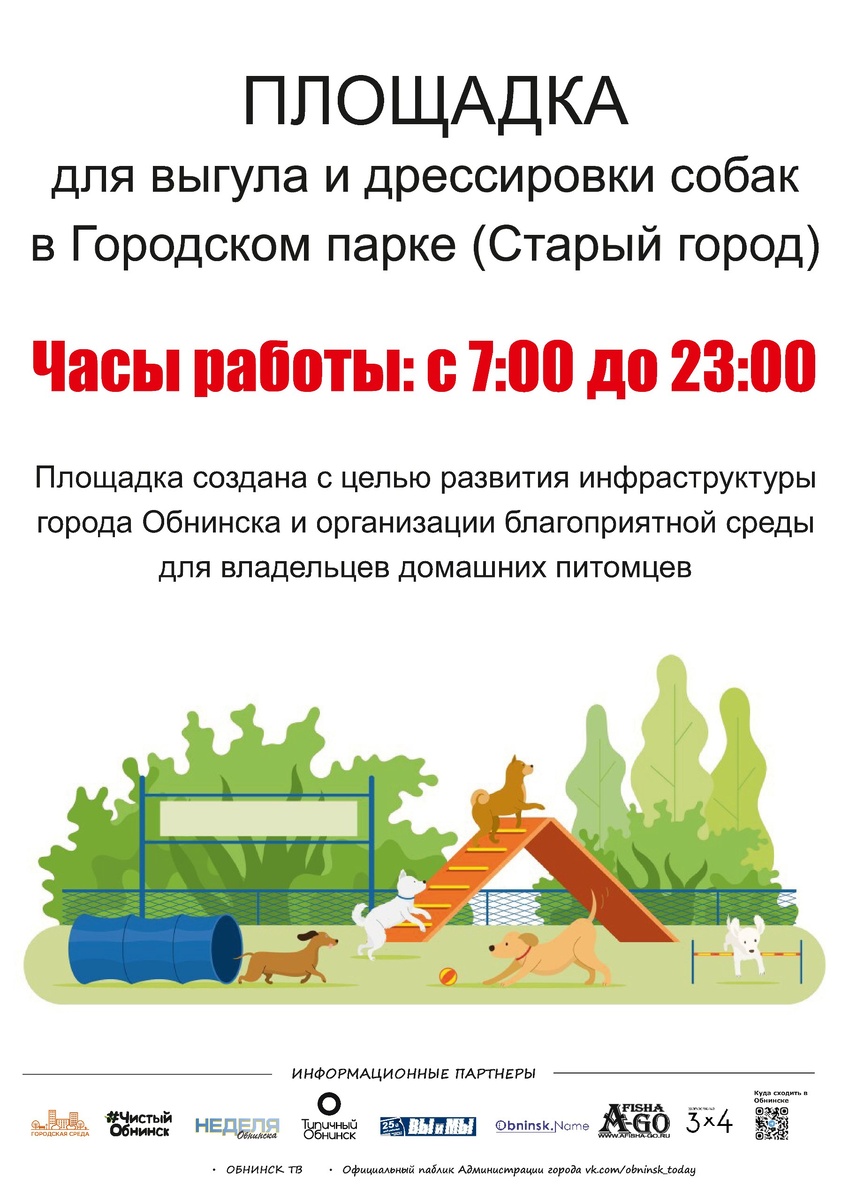 🐕В Городском парке вОбнинске есть площадка для выгула собак, которая открыта ежедневно с 7:00 до 23:00. Это место для игр, общения и дрессировки, а хозяева должны убирать за своими собаками. Вход свободный. 👍 Подписаться | Ваша реклама