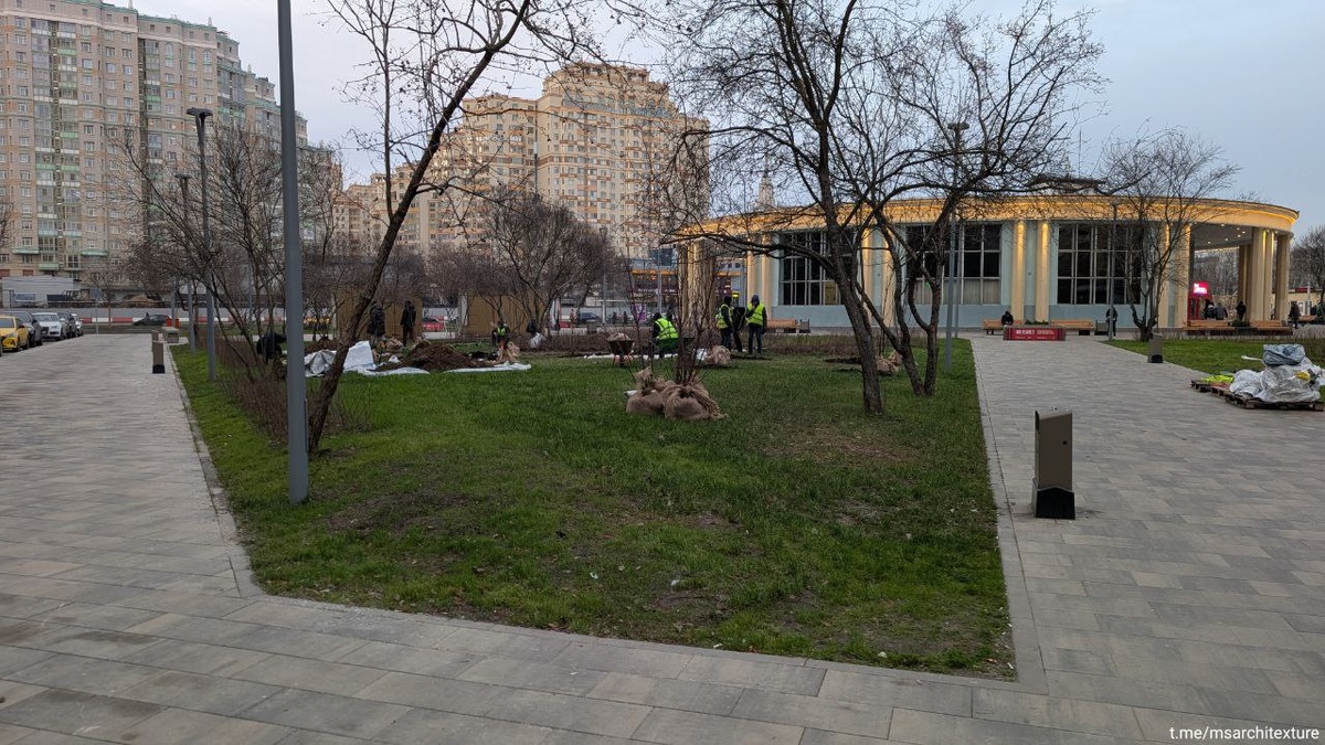 Поймал приятнейший вайб осенних посадок на площади у м. Университет, пахнет отменно. Сажают яблони и огромные ёлки.