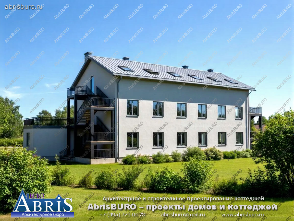 • Проектом предусмотрены три этажа (3-ий мансардный).