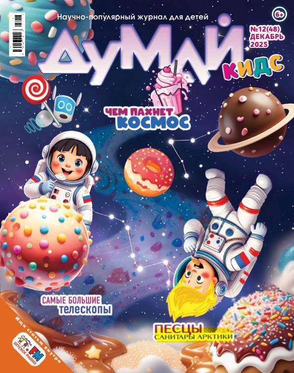 Зимний номер уже здесь — пахнет космосом и новогодним настроением! 📖 В ЭТОМ НОМЕРЕ: 🌌 ЧЕМ ПАХНЕТ КОСМОС — от малиновых туманностей до лунного пороха! 🔭 САМЫЕ БОЛЬШИЕ ТЕЛЕСКОПЫ — как «Хаббл» и «Джеймс Уэбб» открывают тайны Вселенной! 🦊 ПЕСЕЦ — дерзкий санитар Арктики: как выживает в -70°C и охотится под снегом? ❄️ КАДР МЕСЯЦА: ИГЛУ — ледяной дом, который можно построить за 45 минут! 🎄 15 ОШИБОК: НОВОГОДНЯЯ ЁЛКА — найди все промахи художника, иначе праздник не наступит! 🍕 КОСМИЧЕСКАЯ ЕДА — рецепты торта и пиццы прямо с МКС! 🧠 ПОЧЕМУ ЛЮДЯМ СНЯТСЯ СНЫ? — отвечаем на детские вопросы! 🌠 КАК СТАТЬ КОСМОНАВТОМ — советы от кота-космонавта Салюты! 🧩 ЗАНИМАТЕЛЬНАЯ МАТЕМАТИКА — задачи про белку Клару и её тайники! ✨ СДЕЛАЙ САМ — мастерим новогодний фонарик в технике декупажа! 📚 Читайте «ДУМАЙ КИДС» — журнал, в котором наука становится приключением! ❤️ Оформи подписку на www.dumaikids.ru Пусть декабрь будет звёздным, умным и волшебным! 🌟