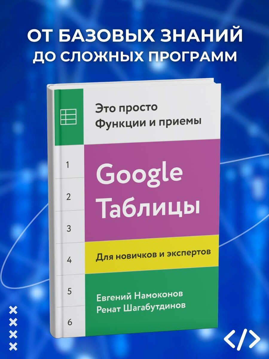 Спасибо Ренату 🙂 Друзья, мой соавтор по каналу Ренат Шагабутдинов решил сосредоточиться на своем проекте @excel_magic, поэтому этот канал дальше буду вести только я, Евгений Намоконов. Мы с Ренатом вместе написали книгу "Google Таблицы. Это просто. Функции и приемы" Также мы вместе делали курс на Скиллбоксе и много лет вели этот канал бок о бок. Ренат больше писал про формулы, а я про скрипты. У Рената в его канале @excel_magic есть рубрики, например "хоткеи по понедельникам" и разные полезности для тех, кто работает с Excel. Пожелаем Ренату удачи 👏