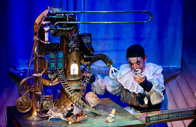 Виктор Плотников как раз и интересен тем, что создает на сцене свою «машинерию», наполняет спектакль «механизоидами», которые сам придумывает «из ничего». Они крутятся, и все вокруг приходит в движение, создавая особый мир спектакля. В «Балаганчике» — мир хмурого блоковского Петербурга. Крутишь ручку, и, как в патефоне после завода пружины, вдруг раздается узнаваемый дивный романс.