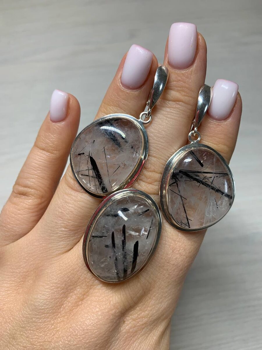 ✅СЕРЕБРО ✅КВАРЦ +ТУРМАЛИН ✅ВЕС ОДНОЙ СЕРЬГИ 8,59 ✅ДЛИНА 52 мм ✅РАЗМЕР КОЛЬЦА 20 ✅ЦЕНА 6500