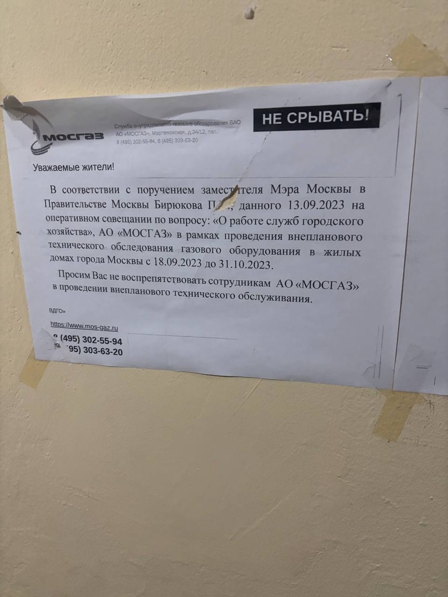 Привет, соседи! В доме по адресу Алтайская, 27 обещали провести капитальный ремонт системы газоснабжения. В объявлениях было указано, что приедет МОСГАЗ, а приехали ряженые «специалисты» от подрядчика ООО «ДЭВЛ». Мало того, что лучше не стало, так ещё и испортили то, что было. Создали видимость работы, заставили перелопатить полквартиры, наделали дыр, навели шуму и исчезли. Надежда была, что после них приедут специалисты из МОСГАЗ и исправят ситуацию, но их мы так и не дождались. Зачем сотрудники ООО «ДЭВЛ» обманывали жителей, притворяясь работниками МОСГАЗ, непонятно. Представители из фонда капитального ремонта, обратите, пожалуйста, внимание и проведите проверку качества выполненных работ. Пост ВК