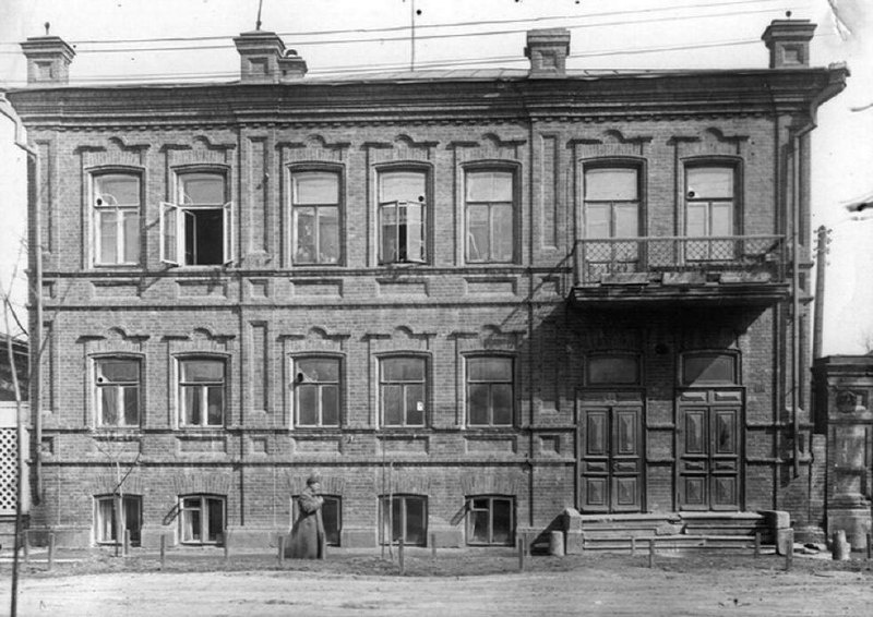 Дом Крылова 📸Фото 1929-1940 год. Ул. Тургенева 18. Здание стоит в центральной части Екатеринбурга, в квартале, ограниченном улицами Тургенева (раньше Верхне-Вознесенская), Первомайской (ранее Клубная) и Мамина-Сибиряка (бывшая Водочная). В 1900 году этот участок приобрёл екатеринбургский мещанин М. М. Крылов. Земля имения имела вытянутую прямоугольную форму с длинной стороной, ориентированной вглубь квартала, и функционально разделялась на двор и огородную часть. Старые постройки были снесены, и на их месте возведён доходный каменный двухэтажный дом с цокольным этажом, расположенный по красной линии улицы, а также двухэтажный полукаменный флигель, хозяйственные службы и баня. Въезд во двор оформлялся кирпичными воротами с калиткой. Сам дом — двухэтажный, кирпичный, с цоколем, в плане близок к квадрату. Главный фасад, выходящий на запад и обращённый к улице Тургенева, симметричен и расчленён семью оконными осями. Фасад разделён лопатками на три части: центральная — из трёх осей, дв
