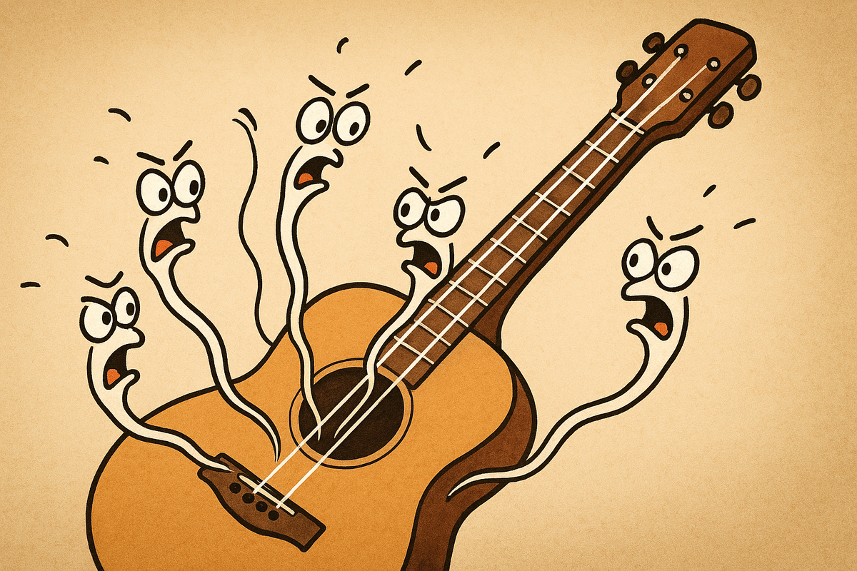 В одном богатом испанском доме, на специальной подставке, за стеклянными дверцами шкафа, находилась роскошная семиструнная гитара. Шесть её струн были скромными и терпеливыми, но четвертая струна, что была в самом центре, чрезвычайно возгордилась и возомнила себя самой главной. «Слушайте меня! — звонко кричала она, — Я — золотая середина, сердце этого инструмента! Без моего ровного и уверенного тона любая мелодия рассыплется. Я — самая важная!» Устав от её хвастовства, гитарист однажды решил её проучить. Он настроил её до идеальной чистоты, а остальные шесть струн ослабил и расстроил так, что они лишь глухо дребезжали. «Ну, пой теперь, солистка», — тихо сказал он и провёл пальцами по всем струнам. Раздался уродливый, раздирающий слух звук. Идеальный тон гордой, хвастливой струны тонул в какофонии гула, скрежета и диссонанса. Она пыталась спеть свою прекрасную мелодию, но вместо этого получалась лишь резкая, неприятная для слуха неразбериха. Никакой красоты, никакой гармонии. Слушатели