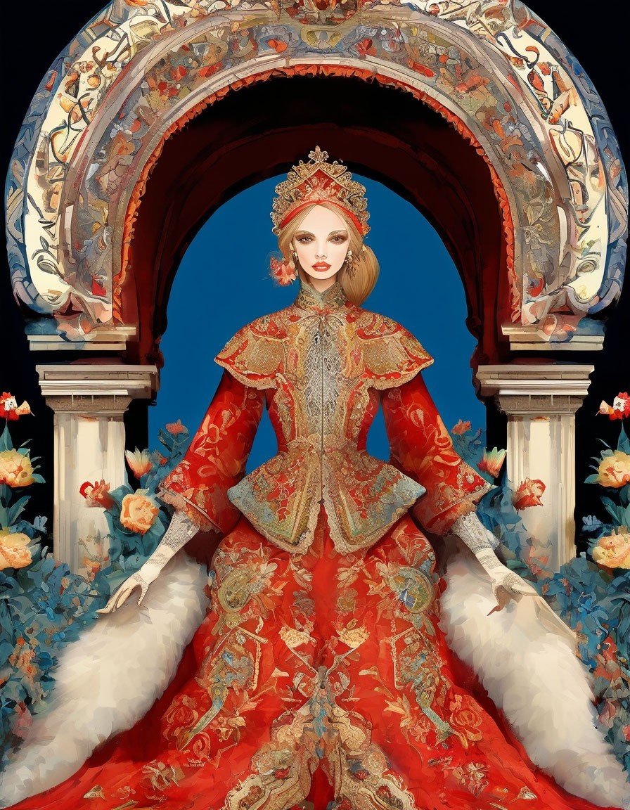 В русских и украинских сказках (например, "Колобок" или "Василиса Прекрасная") доминируют яркие народные мотивы: сарафаны с кокошниками, расшитые узорами, меховые шубы и деревянные избы с резными наличниками. Но сказки также показывают моду высших сословий — царей и бояр из "Царевны-лягушки" или "Марьи Морёвны": парчовые кафтаны с золотым шитьём, собольи шубы с меховыми оторочками, жемчужные ожерелья, венцы и сабли в ножнах. Боярыни носили длинные платья с рукавами-буфами, усыпанные драгоценностями, символизирующими власть и богатство. Общие черты с близкими народами — поляками и чехами: славянские культуры делят любовь к вышивке с цветочными орнаментами (символизирующими плодородие) и многослойной одежде для сурового климата. В польских сказках о "Золотой утке" тоже меха, венки из трав и королевские мантии с гербами; чешские легенды о зимних духах добавляют бархатные камзолы и кружева.