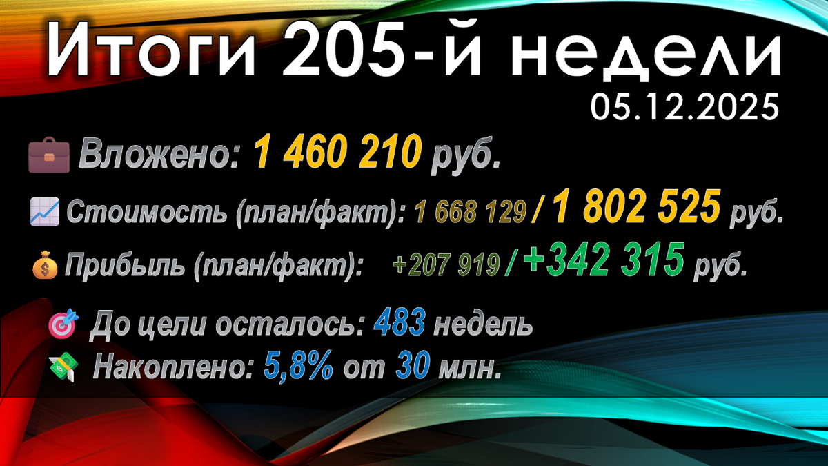 Так что давайте без лишних эмоций разберем, как надежда на мир и макростатистика развернули рынок вверх, и за счет чего портфель оказался впереди на 205-й неделе. Вперед! 🚀