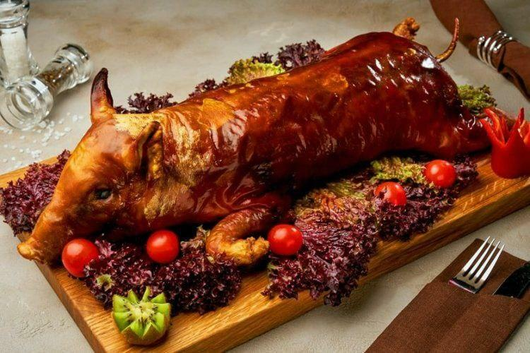 Ингредиенты: 1 поросенок (примерно 10-15 кг) Соль (по вкусу) Черный перец (по вкусу) 4-5 зубчиков чеснока 2-3 лавровых листа 1-2 лимона Оливковое масло (по вкусу) Специи (например, паприка, тимьян, розмарин) Приготовление: Подготовка поросенка: Прежде всего, тщательно очистите поросенка, удалив все внутренности. Промойте его под холодной водой и насухо вытрите. Маринад: В миске смешайте оливковое масло, соль, черный перец, нарезанный чеснок и специи. Обильно натрите поросенка этой смесью как снаружи, так и внутри. Добавление лимонов и лавровых листьев: Внутрь поросенка положите нарезанные лимоны и лавровые листья. Это придаст дополнительный аромат. Запекание: Поместите поросенка на решетку в духовке или на гриль при температуре 160-180 °C. Запекайте около 4-6 часов в зависимости от размера. Регулярно поливайте его выделяющимся соком, чтобы мясо было сочным. Зарумянивание: За 30-40 минут до конца запекания увеличьте температуру до 220 °C для получения золотистой корочки. Проверка готов