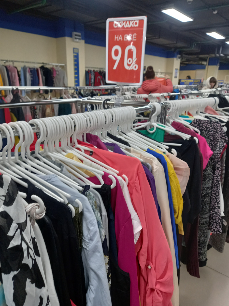 Привет! Как же приятно посещать магазин на скидее 90%. Можно купить практически всё что хочется) Попала в магазин не с самого утра, но и к обеду удалось найти кое что интересненькое. Ряды с одеждой пустели прямо на глазах. В каких бы магазинах секонд хенд я не была заметила одну особенность-очень много вещей маленьких размеров. 42-44. Для худышек тут прям рай . Платья, брюки, куртки...Можно одеться очень модно и за копейки. Ассортимент детских вещей не плохой. Мне же с моим 50 размером приходится попотеть, чтобы найти подходящие вещи. К тому же у меня приличный рост. 171 см. Не стандарт я 😆 Еще я не люблю вещи " в облипку". Люблю комфорт🙂 Покажу что понравилось и что примерила! Если честно, то вещей было очеееень много. Большая корзинка с верхом. 1. Платье тёплое, спортивное. Сидит не плохо, но цвет меня бледнит, как оказалось. 2. Некоторые вещи я смотрела для мамы. Фото такого платья отправила ей . Она отказалась. Потом жалела😆 Говорит за "стольник" то надо было брать