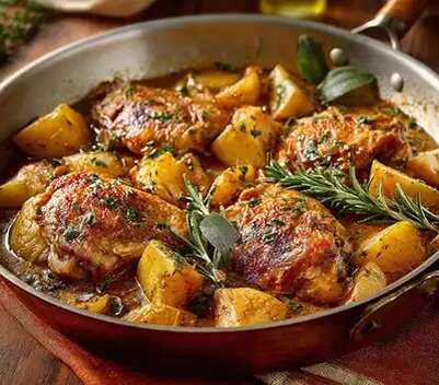 Все нужные продукты подготовлены. Начинаем готовить вкусные куриные бедрышки с картофелем в духовке. 1. Разогрейте духовку до 200 градусов. Тщательно промойте куриные бедрышки под холодной водой и очень хорошо промокните их насухо кухонной бумагой. Энергично приправьте кожицу паприкой, солью и перцем. 2. Очистите картофе