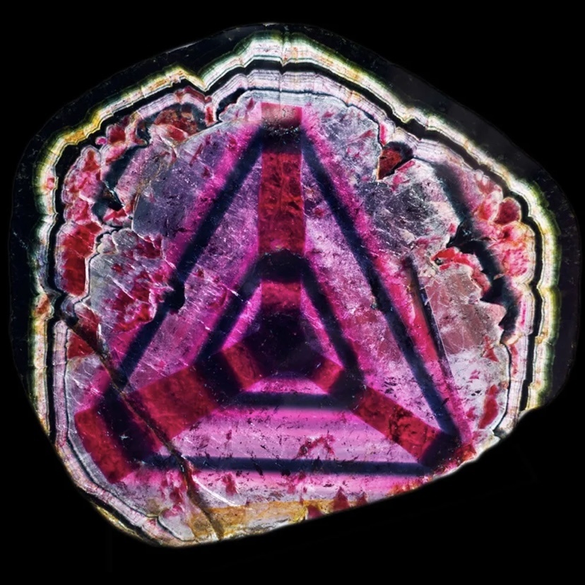 Среди пёстрого и шумного семейства турмалинов, знаменитого всей радугой оттенков, лиддикоатит стоит особняком — он не просто редок, он уникален в своей сложной архитектуре и молчаливом достоинстве. Главный секрет редкости лиддикоатита кроется в его происхождении и химической «рецептуре». Это кальциево-литиевая разновидность турмалина, которая была официально признана и описана лишь в 1977 году и названа в честь Ричарда Т. Лиддикоата, легендарного президента Геммологического института Америки. До этого времени его кристаллы, найденные в пегматитах, часто относили к более распространенным эльбаитам. Для его формирования требуется очень специфическое и редкое сочетание элементов — обогащенная кальцием и литием среда, которая медленно кристаллизуется в условиях, меняющихся словно сезоны. Каждый новый слой роста привносит новые примеси, создавая внутри кристалла неповторимую летопись. Именно эта сложность и делает крупные, качественные образцы столь исключительными. Месторождения этого