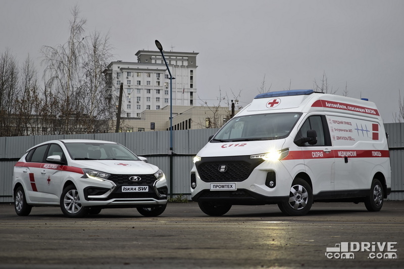 Вторая новинка – это автомобиль «медслужбы» на базе универсала LADA Iskra SW. Даже базовая модель все еще по праву считается новой, а на «Промтехе» смогли в ней смонтировать еще и носилки – чем не демонстрация возможностей?..