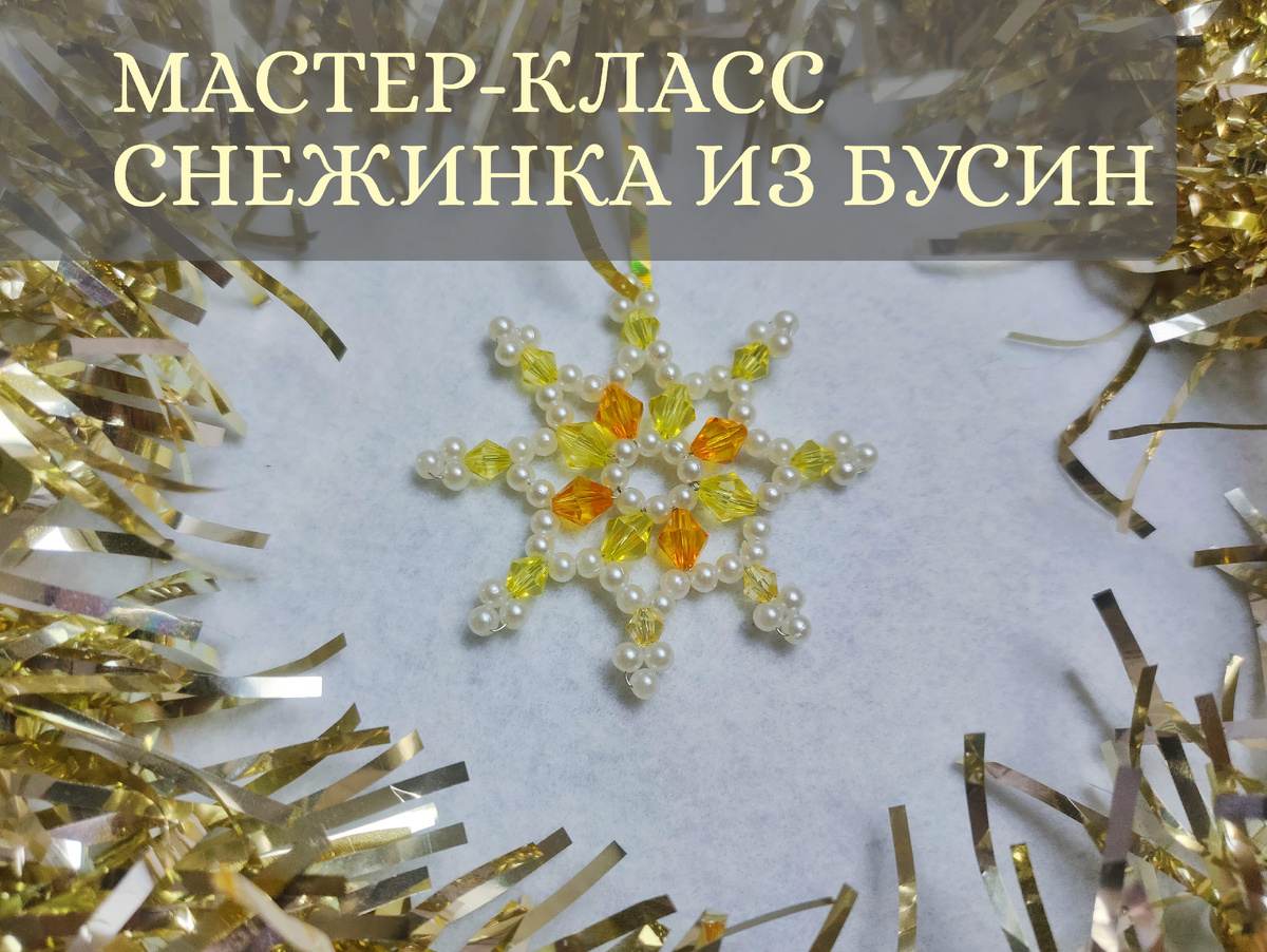 Совет: Вы можете играть с размерами и цветами бусин, соблюдая примерные пропорции. Так у вас получатся разные варианты снежинок.