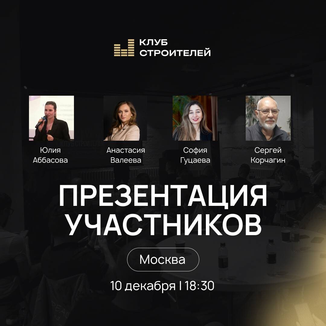 10 декабря в 18:30 состоится презентация участников профессионального сообщества, где своим опытом поделятся ведущие эксперты отрасли. Спикеры мероприятия: ▪️ София Гуцаева — Основатель консалтинговой компании ООО "КГ Аутсорсинг", налоговый консультант, член Ассоциации налоговых консультантов. Тема: «Налоговая реформа-2026: законные способы снизить налоговую нагрузку» ▪️ Юлия Аббасова — Предприниматель с 20-летним стажем, бизнес-наставник. Тема: «Текстиль как финальный инструмент, который спасает объект: 10 ошибок строителей и дизайнеров» ▪️ Сергей Корчагин — Архитектор производственных систем, международный эксперт в управлении бизнесом. Тема: «Обученная мотивированная команда — фундамент устойчивости компании» 🎯 Особое внимание! ▪️ Анастасия Валеева — Генеральный директор и основатель компании «Фабрика Фасадов», эксперт в области современных фасадных решений. Тема выступления: «Премиальные фасады под ключ: стратегии увеличения ценности работ и формирования клиентской лояльности» 📌