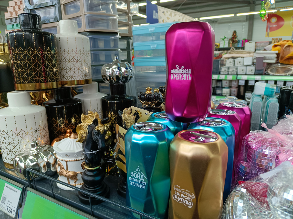 В "Фикс Прайс" я часто замечаю, как сотрудники выкладывают товары из коробок, которые стоят в проходах. Это неудивительно, ведь до праздников остается совсем немного времени, а новинок с каждой неделей становится всё больше. Во время обхода по отделам я обратила внимание на множество интересных и полезных товаров, которые сразу привлекли моё внимание. И в этом обзоре, делюсь с вами увиденным в "Фикс Прайс" города Крымск. Современная ваза из керамики с глянцевой чёрной отделкой, украшена геометрическим ромбовидным узором золотистого цвета. Небольшая горловина придает этой вазе изогнутый акцент, подчеркивающий ее современную изысканную форму. Цена 249 рублей. Копилка "Айрон" в стильном дизайне высотой 15 см, яркий и оригинальный предмет декора будет замечательно смотреться на полке, комоде или рабочем столе. Цена 199 рублей. Простая и персонализированная настольная лампа с оригинальной перфорацией, в комплекте кабель 100 см. Прекрасно подойдет для спальни, гостиной, чайной комнаты ил